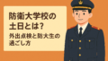 防衛大学校 防衛大学校の土日とは?|外出点検と防大生の過ごし方 防衛大学校の土日の実態を元防大生が解説。起床~日朝点呼、外出点検と外出ルール、よく行くスポット、躾点呼・日夕点呼・消灯点検まで1日の流れを詳しく紹介。 2024.11.09 防衛大学校防衛大学校の闇