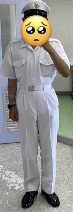 白シャツは第二種夏服と呼ばれる制服を着用する時、ヒートテックは秋季定期訓練や冬季に使用します。(下の画像が第二種夏服です。)