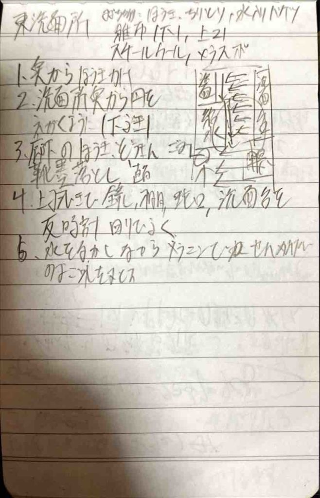 申し送りを受けている側も、なるべく清掃場所の見取り図を描くなどして丁寧にメモをとってください。