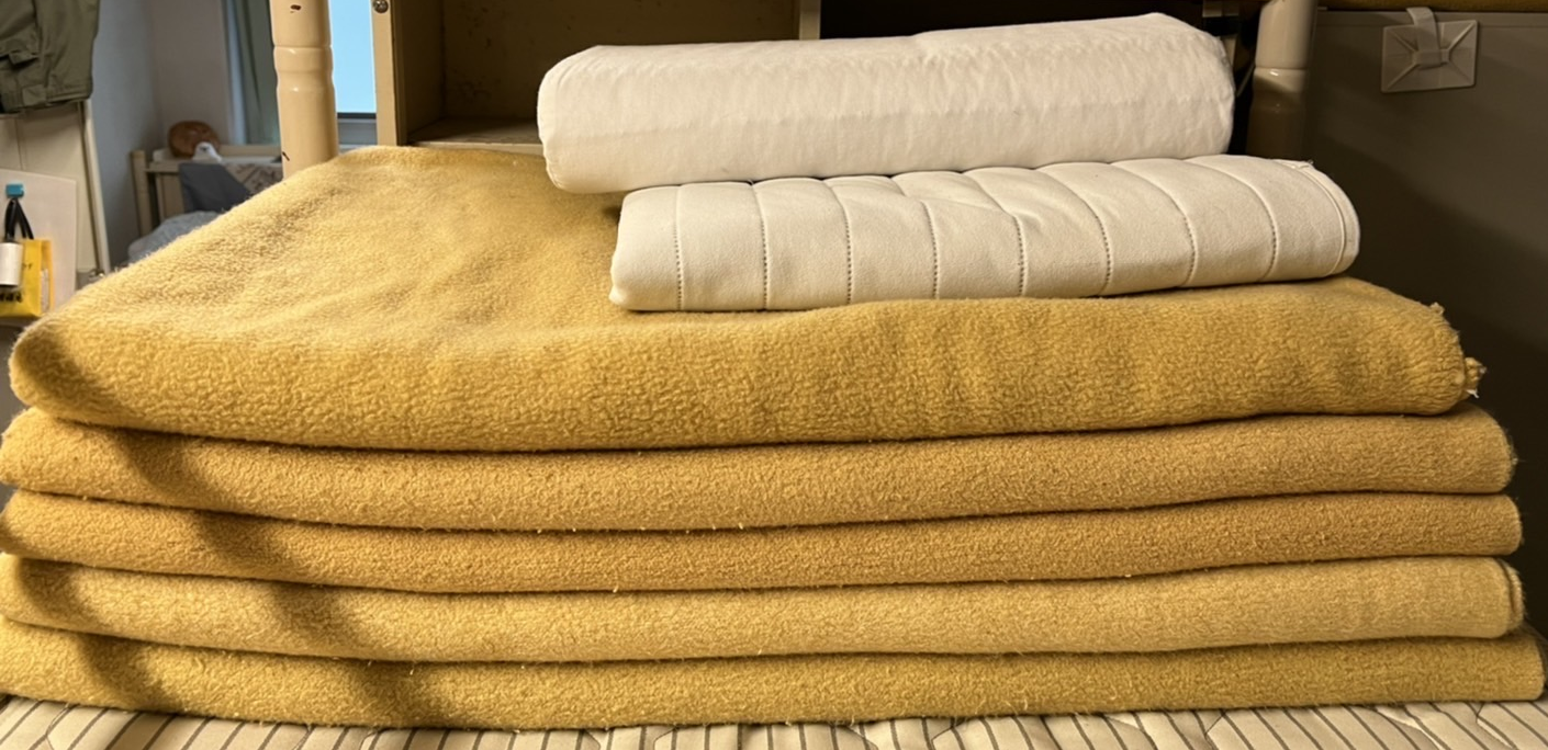 これは私が退校した時の写真ですが、毛布→シーツ→枕の順番で置きます。
